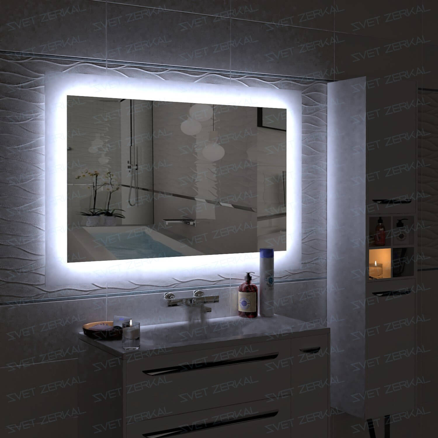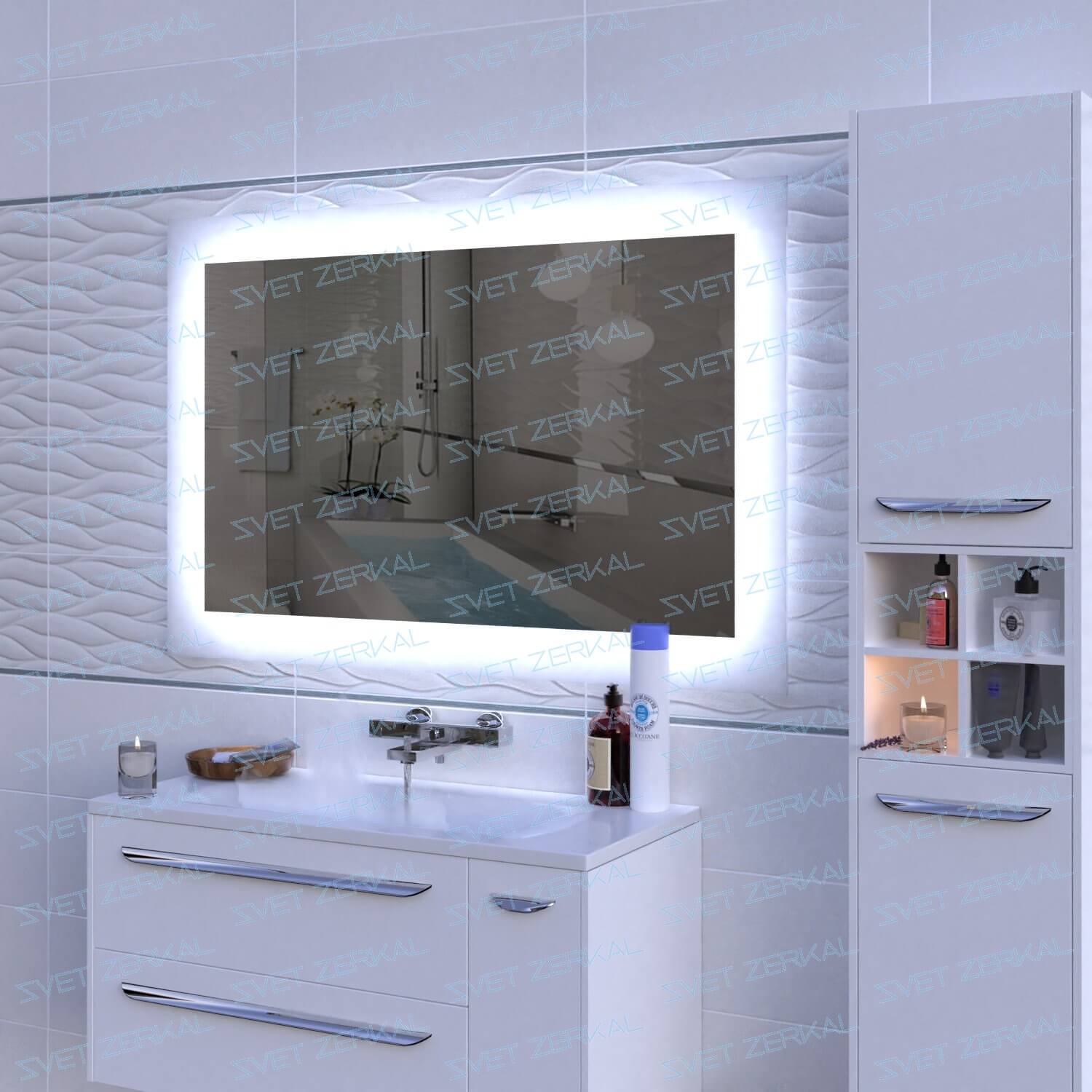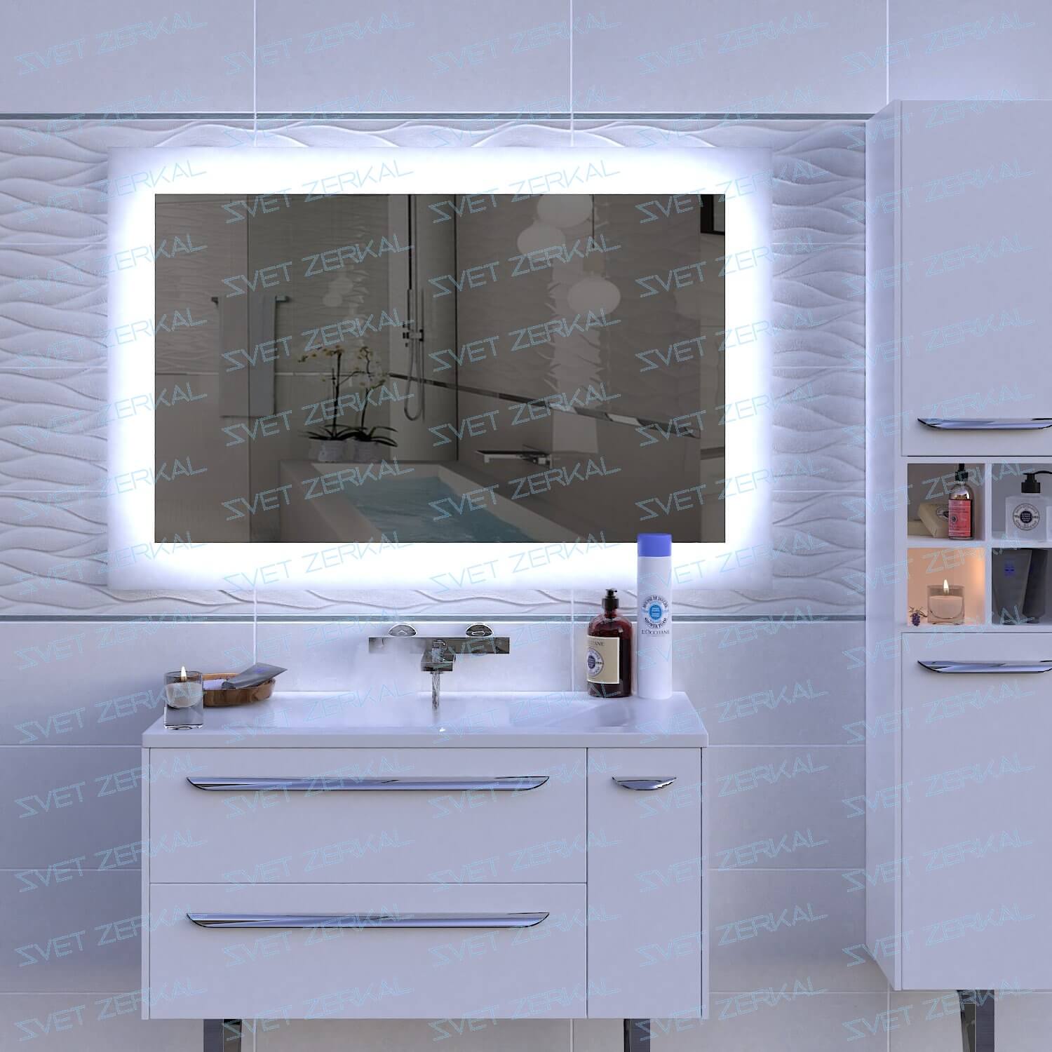 Наши технологии позволяют дать вам самое тонкое зеркало с LED подсветкой - всего - 34 мм. Теперь никаких компромиссов - отличный дизайн и "легкость" конструкции.